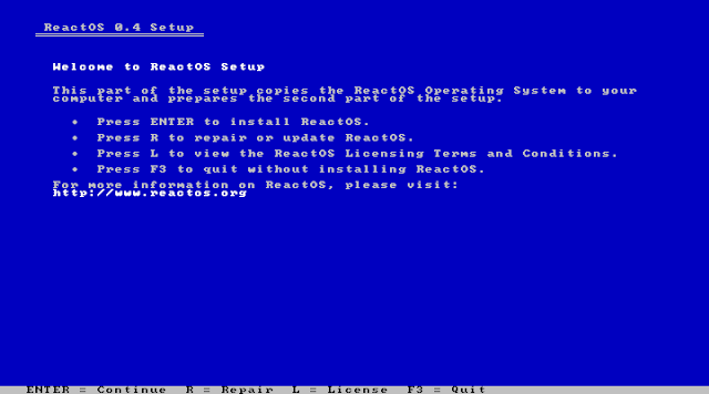 Then ReactOS simply shows a welcome message and tell about license agreements.